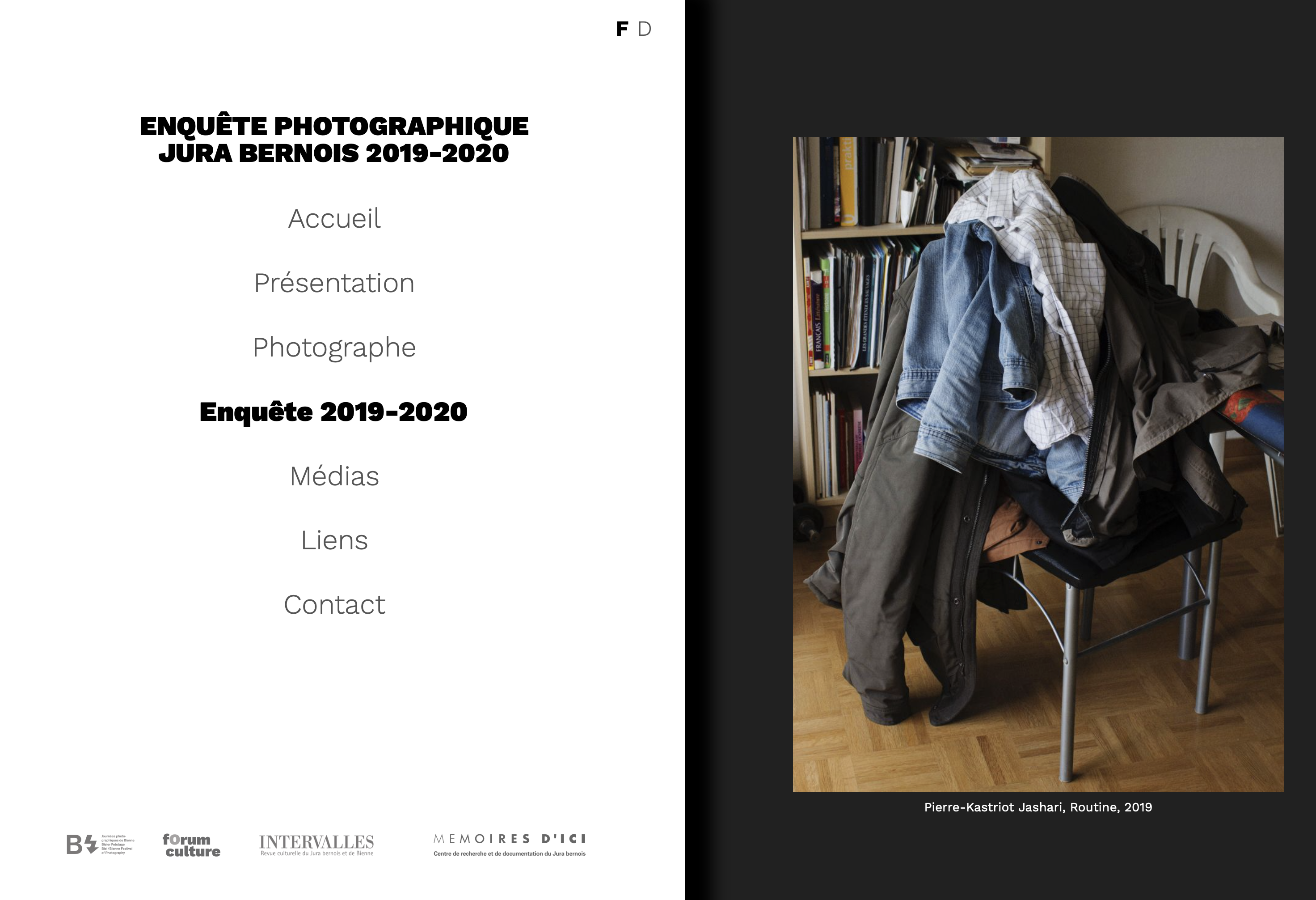 L'enquête photographique Jura-bernois 2019–2020 est un projet conjoint des Journées photographiques de Bienne, du fOrum culture, de la revue Intervalles et de Mémoires d’Ici. Chaque mois, une nouvelle photographie du lauréat Pierre-Kastriot Jashari est affichée dans les communes du Jura bernois dans le cadre du projet des affiches culturelles du fOrum culture.